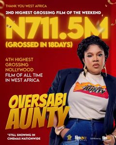 Produced and directed by the actress, the movie has now become the fourth highest-grossing Nollywood film of all time in West Africa. The achievement was announced on Monday by the film’s official distributor, FilmOne Entertainment, via its Instagram page. According to FilmOne Entertainment, Oversabi Aunty earned ₦711.5 million, making it not only the fourth highest-grossing…